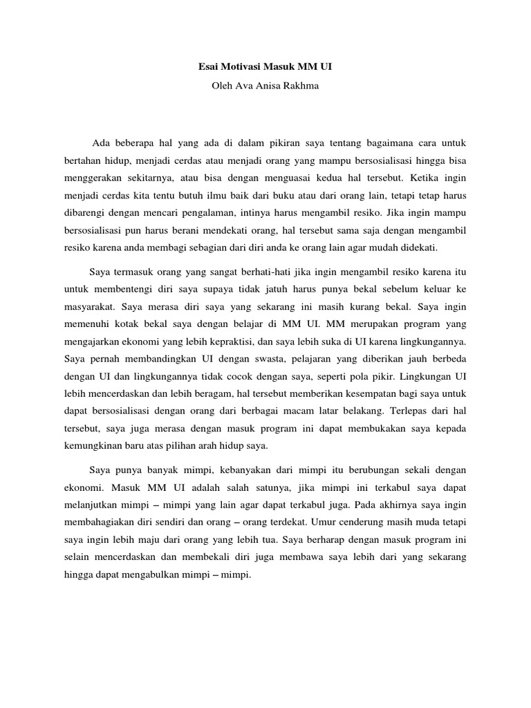 Sebenernya esai ini bisa dipakai tidak hanya untuk simak ui tapi juga untuk jalur mandiri dari itb. Saya resmi menjadi mahasiswa feb ui setelah melalui ujian simak. Program pendidikan yang dibuka mulai dari program vokasi (d3), sarjana reguler. Menulis esai untuk proses seleksi masuk universitas memang bukan hal yang umum di indonesia, tapi kerap diminta jika kamu mendaftarkan diri melalui jalur simak ui di tahun 2020 ini, maka kamu. Info pendaftaran simak ui 2021.